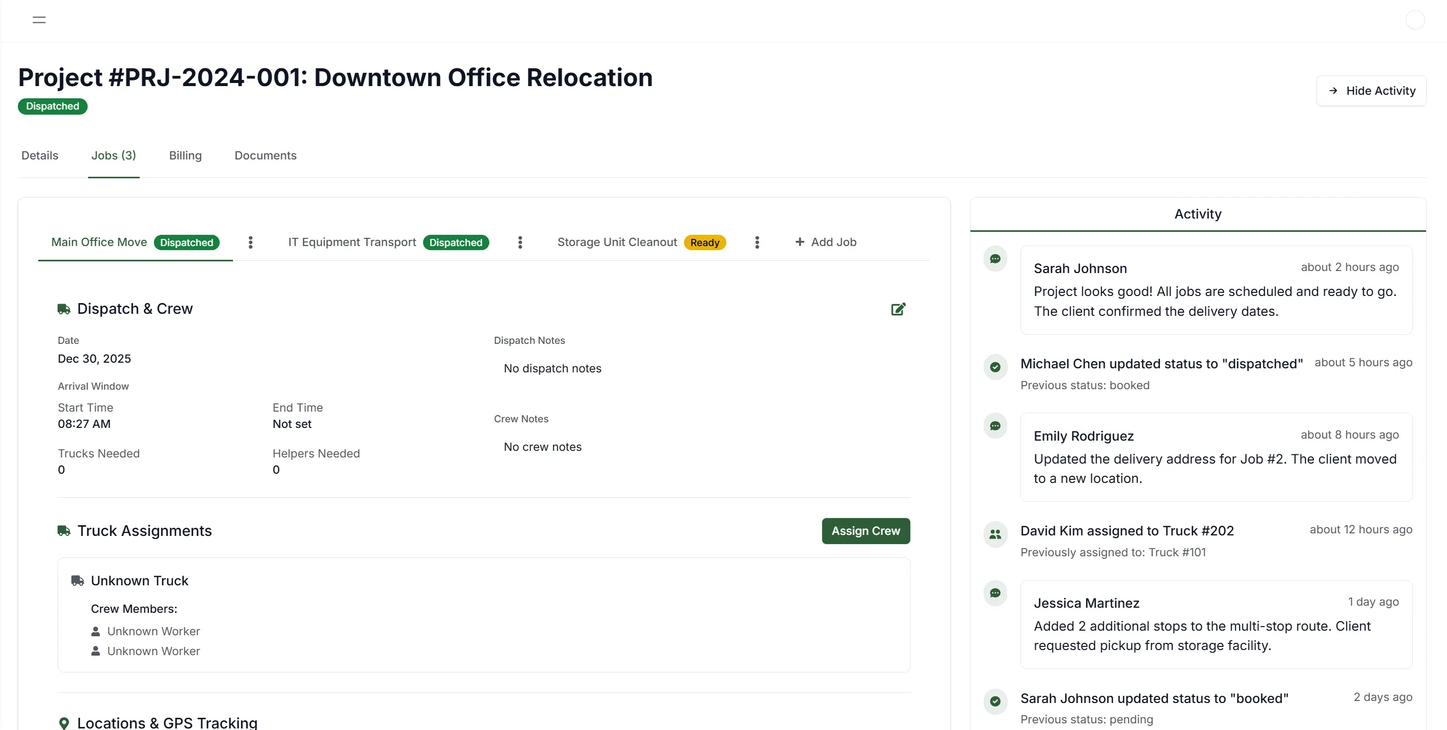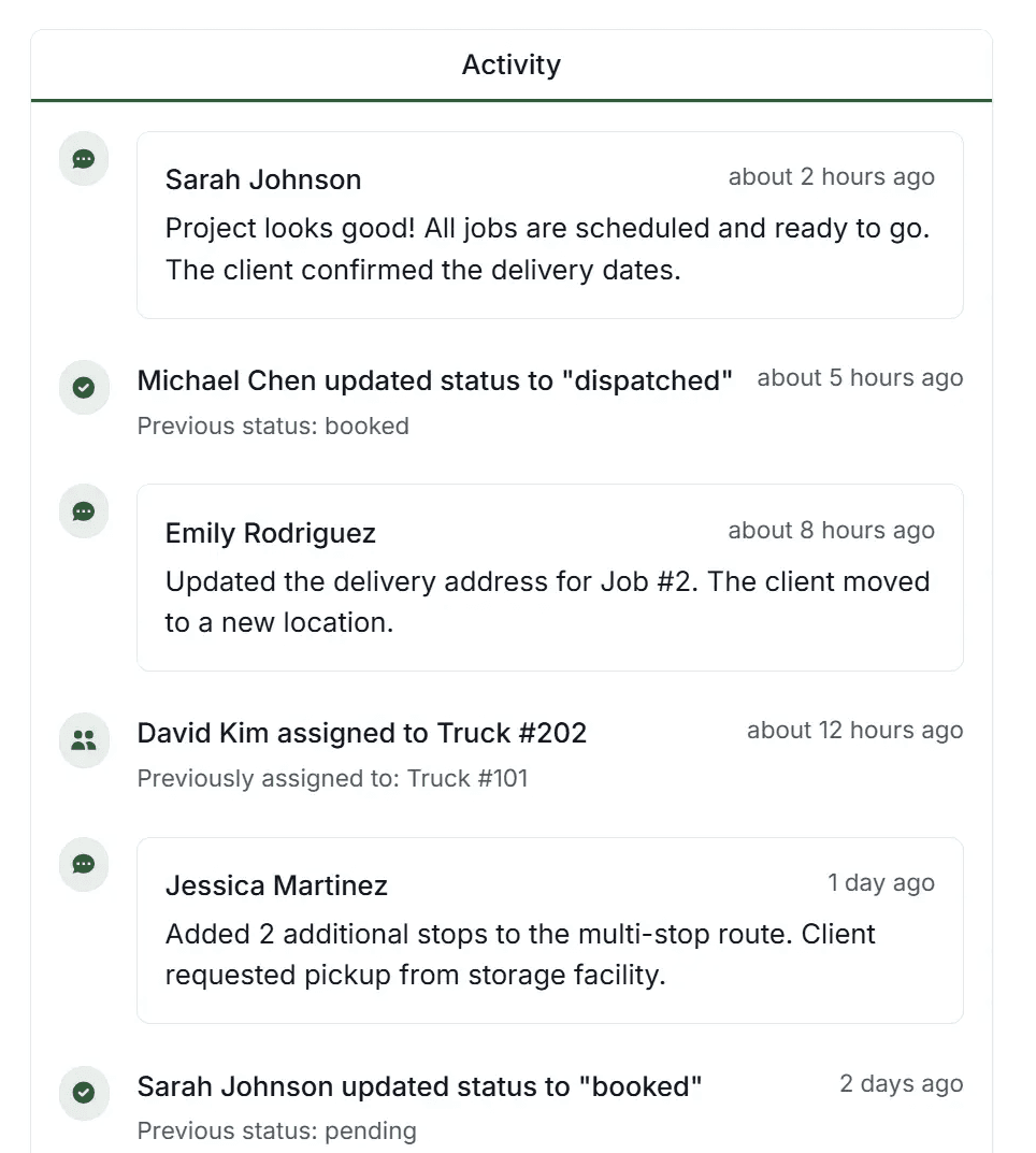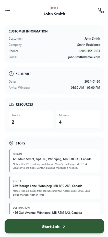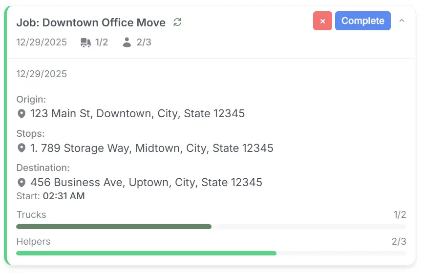 Centralized job details, crew assignments, and schedules reduce missed information and day-of-move chaos.