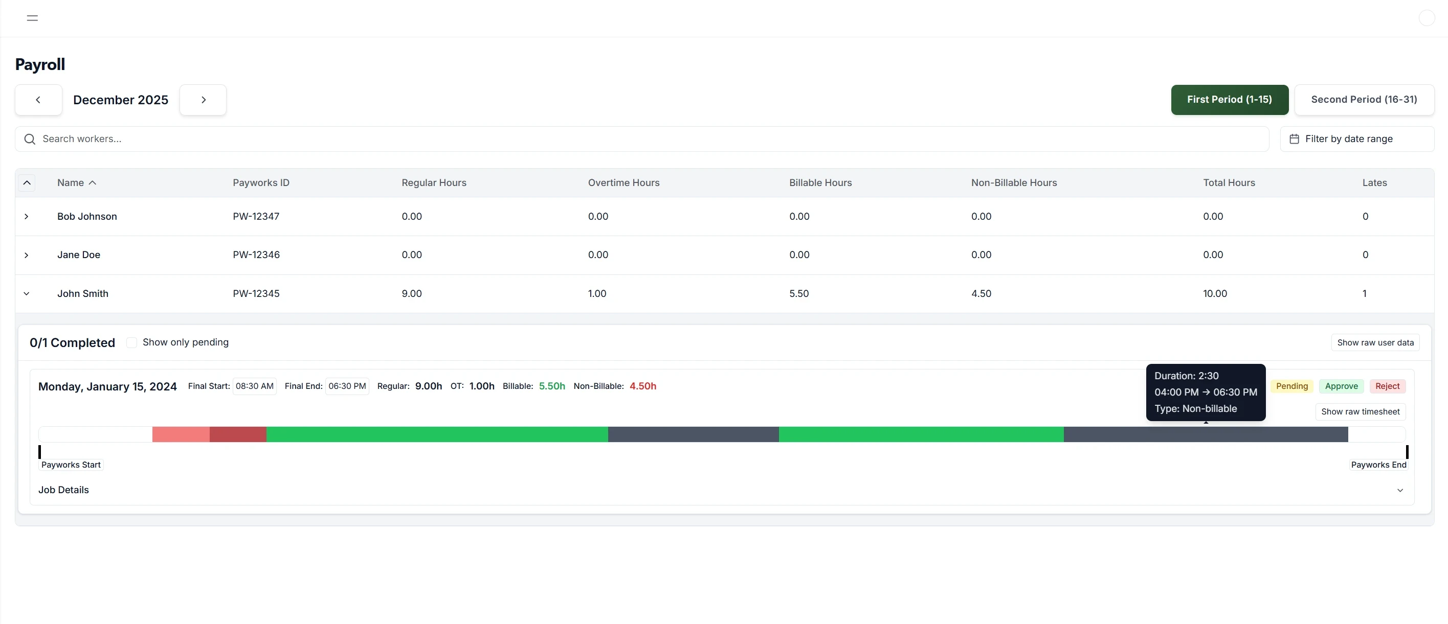 See who’s working, where they are, and what they’re assigned to.